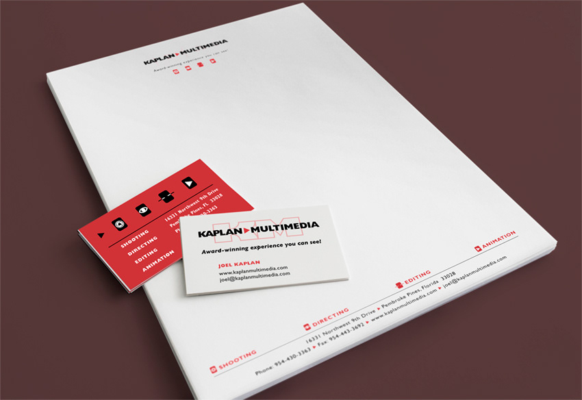 Logo and stationery package for Multimedia company specializing in various facets of video production.